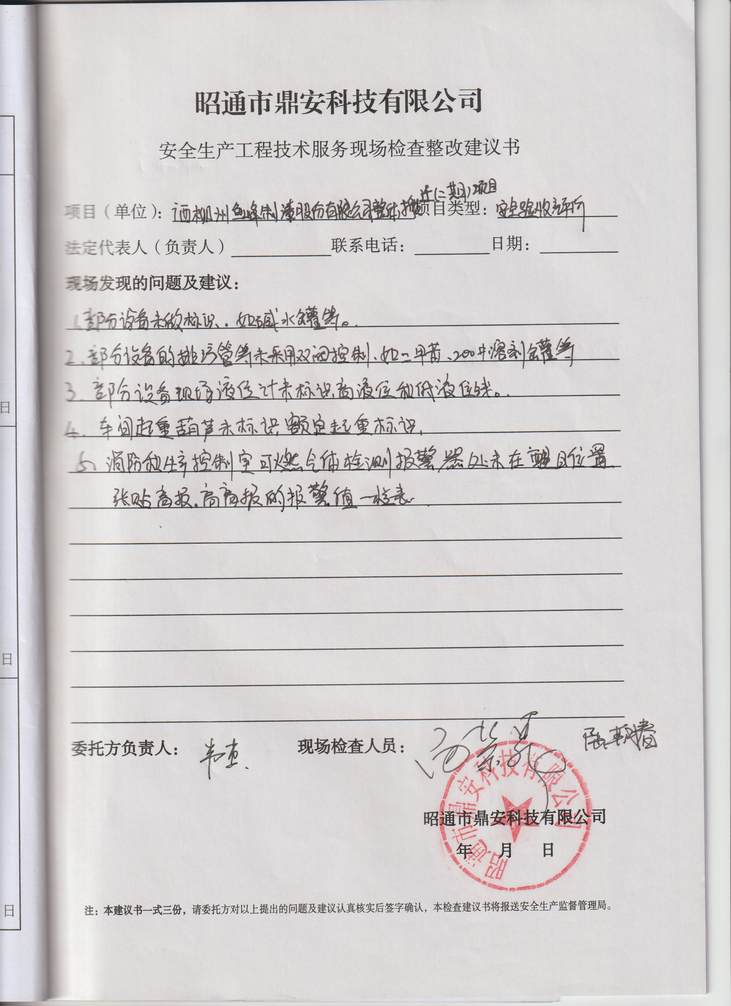 廣西柳州魚峰制漆股份有限公司整體搬遷(二期)項目安全驗收評價報告